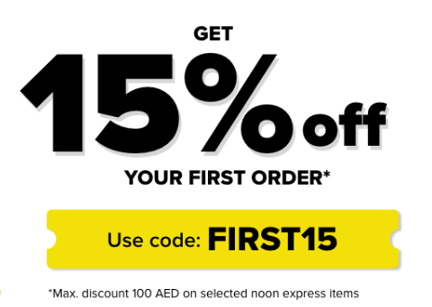 Get 15% Discount On Your Shopping while you shop for 100AED at Noon UAE.
